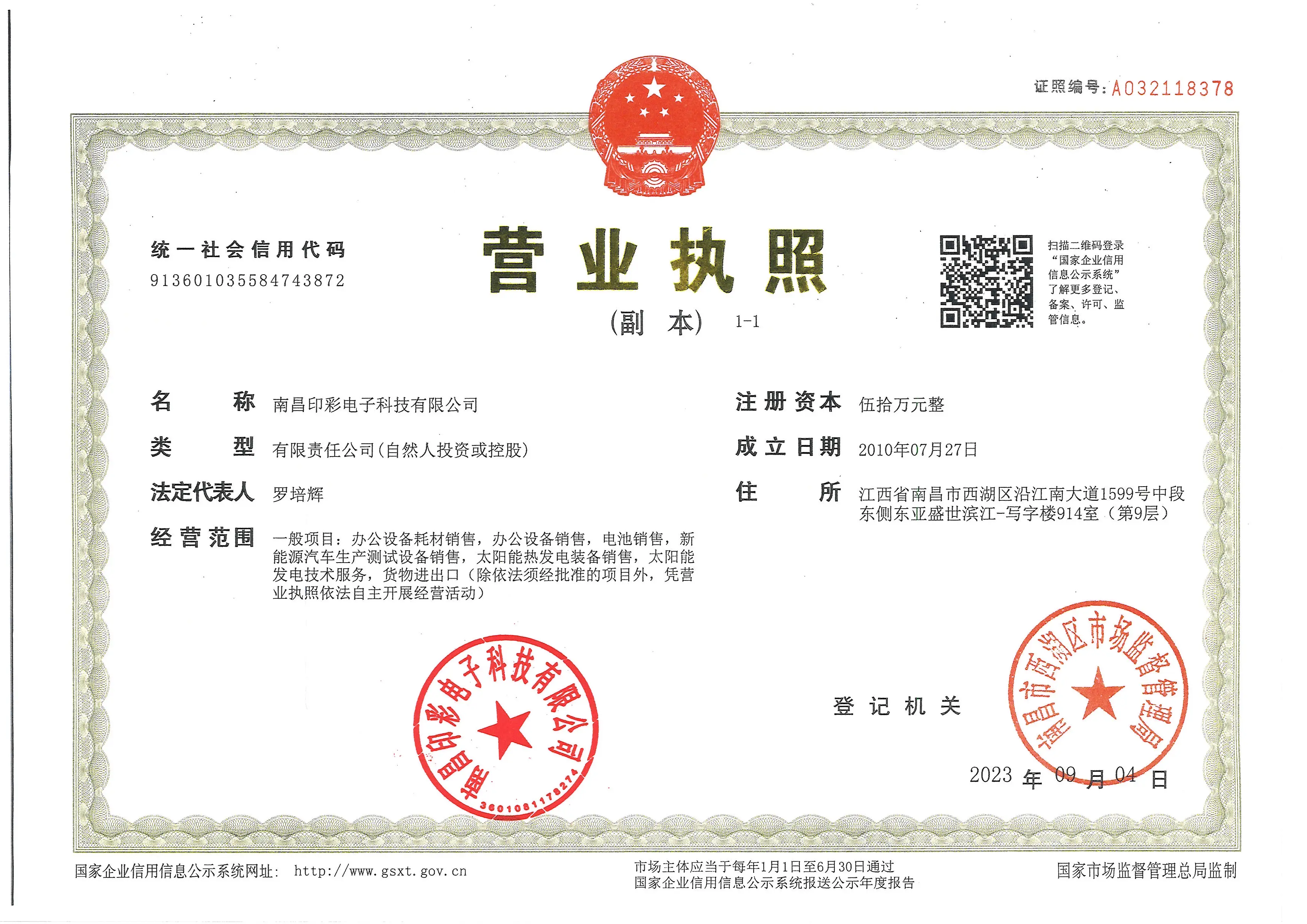Registered address : Room 914 (9th floor), East Asia Shengshi Binjiang-Office Building, east side of the middle section of No. 1599 Yanjiang South Avenue Nanchang Jiangxi China
